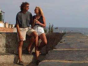 Torsten und Imke in Pals. | Torsten und Imke in Cadaques. Vor einem Laden in dem es Kunstdrucke von Salvatore Dali zu kaufen gibt. Cadaques war Dalis Heimatsort. |