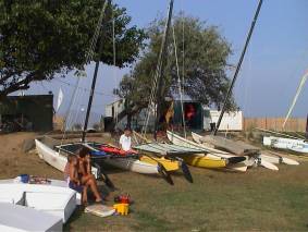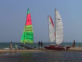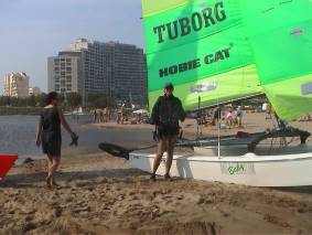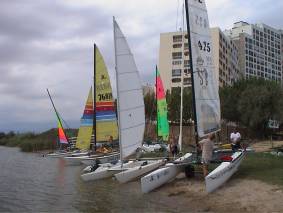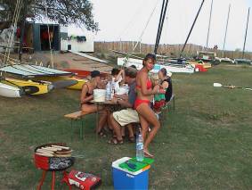 | Bilder und ein Plan von Ampuriabrava. | Unser diesjähriges Appartement an dem kleinen Hafen Port-Los-Argonautos gelegen. (siehe Pfeil) | Der Ausblick von unserer Terrasse auf die Sportboote der Nachbarn. | Port-Los-Argonautos ist nur einer von vielen kleine Häfen des weit verzweigten Netzes von Meerwasserkanälen in Europas größter Marina "Ampuriabrava". | Torsten und Imke auf dem Platz vor der Kirche in Cadaques. | Torsten und Imke. | Eine der Strandbars in Ampuriabrava. | Die staatliche Segelschule "Centre Municipal de Vela". | Die Boote des Beach-Cat-Clubs dessen Mitglied ich bin sind zu Gast auf dem Gelände der "Centre Municipal de Vela". | Das Gelände liegt direkt an dem Fluß "Muga" welcher westlich von Ampuriabrava in den Golf von Rosas fließt. Die Mündung ist gerade von den Wellen zugespühlt gewesen. | Die Catamarane des Beach-Cat-Clubs. | Die Catamarane auf der gegenüberliegenden Seite der Muga vom Campingplatz "Laguna". | Das Gelände der "Centre Municipal de Vela" unser Liegeplatz für die Urlaubszeit. | Ein Grillabend mit unseren Segelfreunden vom Beach-Cat-Club.Ein | Unser Hobie 16 ist fertig zum auslaufen! An der Mündung der "Muga".er | Torsten beim Segeln. | Unser "Baby" nach einem Segeltag. Bootsname: "Millennium Baby": |