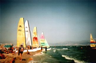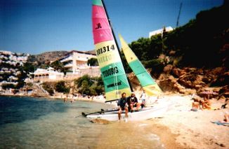Eine Segelschule und Bootsverleih mit drei Hobie 15 direkt in Roses. |