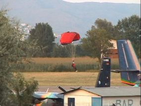 Einer der vielen Fallschirmspringer auf den Sportflughafen von