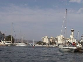 Der im Hintergrund sichtbare Turm des Club-Nautico, das Wahrzeichen
