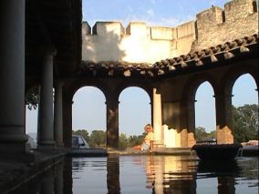 Eine Brücke über den Stadtgraben von Castello de Empuries hinweg. |