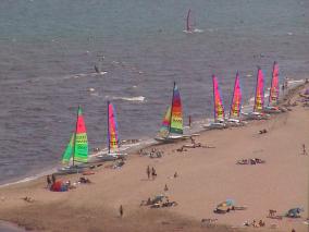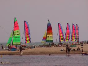 | Das Historische Waschhaus in Castello de Empuries. | Der im Hintergrund sichtbare Turm des Club-Nautico, das Wahrzeichen Empuriabravas. | Die Bar "El Timoner" die Stammkneipe und jeden Donnerstag Treffpunkt der Mitglieder der Empuriabrava Beach Cats. | Das Gelände des "CMVE", der kommunalen Segelschule und gleichzeitig des Club de Catamaran Empuriabrava Beach Cats. Es befindet sich an der Mündung des Flusses Muga an der Süd-Ecke Empuriabravas. | ![]() |